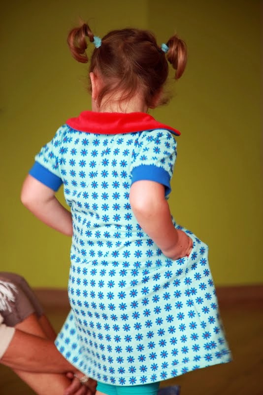 ik maakte van het charlie patroon een jurkje, want dat heeft hier ten huize Patat en Kroket tegenwoordig de eerste keus als het aan hun ligt.