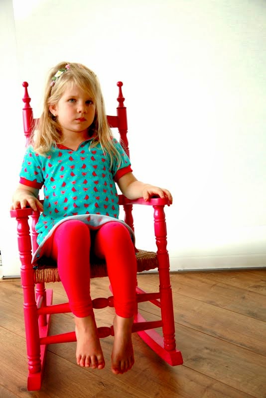 in de opgeknapte kinderschommelstoel uit de kringloop
